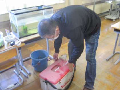 今日、縁あってたまたま来校され、メダカが減っていることを知り、わざわざ立派なメダカを持ってきてくださいました。中には、三色の高級なメダカもいます。