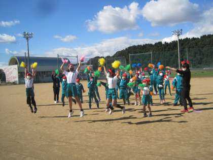 10月21日(木) 朝日んぴっく全体練習 応援練習 公開日 2021/10/21 更新日 2021/10/21 朝日小学校NEWS 青い空、白い雲、、、応援の声も一段と響き渡っています。 応援もバージョンアップしてきましたよ。