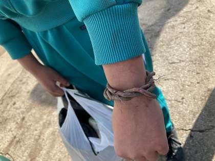 10月21日(木) 4・5・6年生 さつまいも掘り その3 公開日 2021/10/21 更新日 2021/10/21 朝日小学校NEWS 最後に、お世話になった地域の方に挨拶をしました。 もう、30年以上も子供たちに芋掘りの畑を提供してくださっています。 子供たちのことを大切に思ってくださる姿に頭が下がります。本当にありがとうございました。 一番下の写真は、さつまいものツルで作った腕輪です。とても素敵!