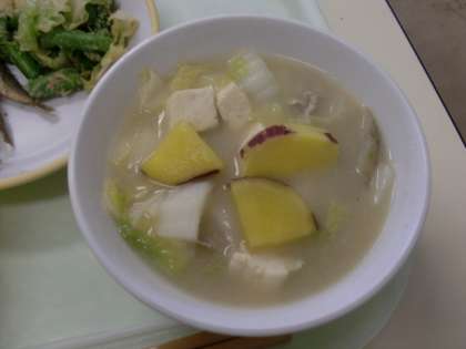 今日の「さつま汁」に入っているサツマイモも甘くてとてもおいしいですね。