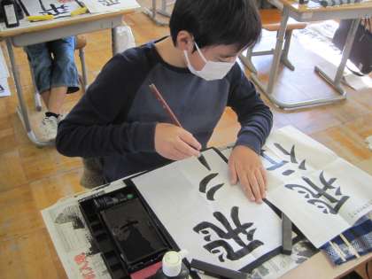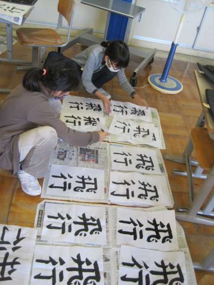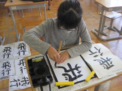 「飛」という漢字は、画数も多いので難しいようです。心を整えて、一生懸命に練習しています。