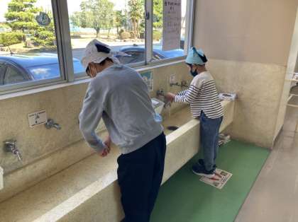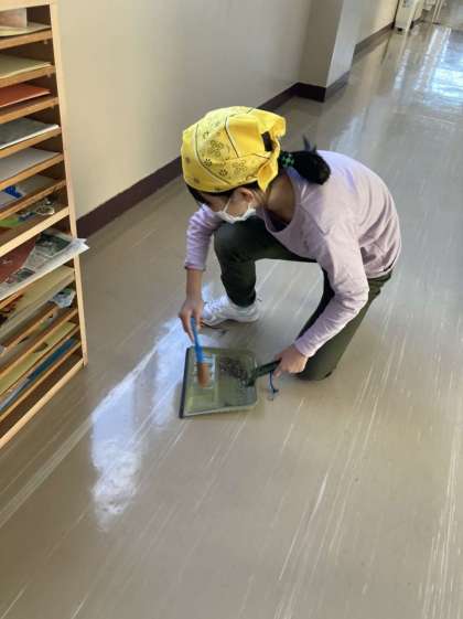 掃除中、おしゃべりをせず集中して取り組んでいます。