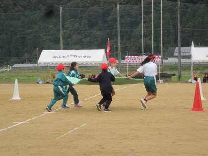 10月25日(月) あさひンピック予行練習 その5 公開日 2021/10/25 更新日 2021/10/25 朝日小学校NEWS なかよし競技の様子です。 これも第1組しかしていないので、当日までどちらが勝つか分かりませんよ。 団席では、下学年だけで応援しています。