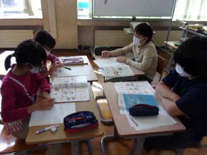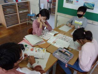 10月27日(水) 5年生 家庭科 調理実習の計画を立てよう 公開日 2021/10/27 更新日 2021/10/27 5年生 班ごとに、調理実習の計画を立てています。 美味しいごはんと味噌汁をつくります。