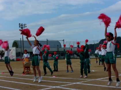 エール交換の様子です。 まずは、赤団から。 「赤団!勝つぞ〜!」「ファイア〜!」