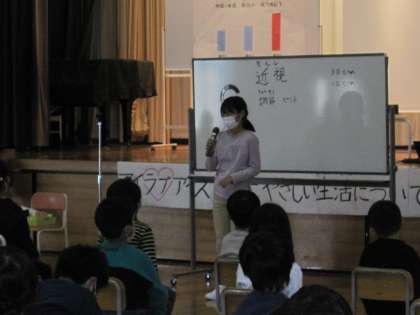 朝日っ子は、いつも元気で挨拶もよく、来校するのを楽しみにしていると褒めていただきました。