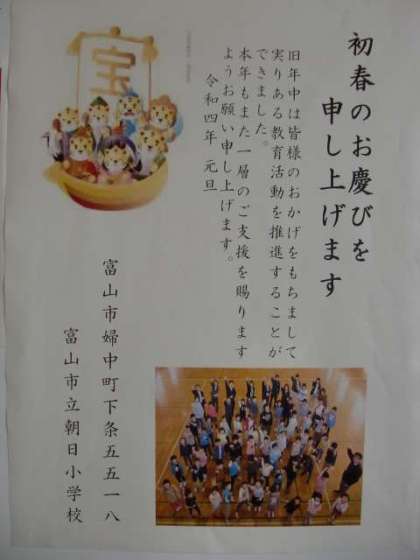 令和4年1月1日(土) あけましておめでとうございます! 公開日 2022/01/01 更新日 2022/01/01 朝日小学校NEWS 新年あけましておめでとうございます! 令和4年が朝日小学校の子供たち、保護者、地域の皆様にとって、素晴らしい一年となりますように。 今年も引き続きよろしくお願いします。