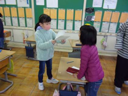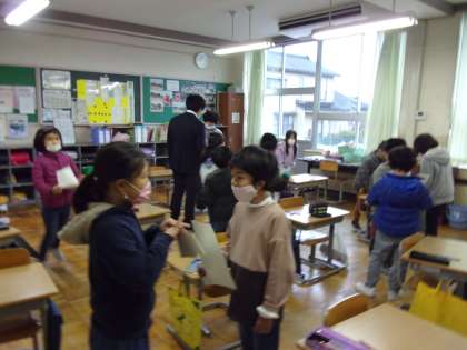 1月11日(火) 2年生 学級活動 冬休みクイズ 公開日 2022/01/11 更新日 2022/01/11 2年生 学級のみんなと一人一人と挨拶を交わし、冬休みクイズを出し合いながら、互いの冬休みの様子を伝え合っていました。 担任の先生からのクイズにも○×で楽しく答えていましたよ。
