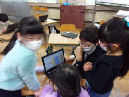 一番Chromebookを活用している1年生は、さっそくChromebookを使っています。
