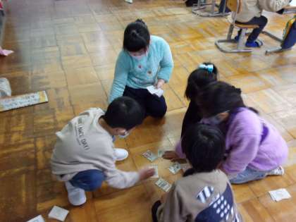 朝日かるた大会に向けて、練習している子供もいます。