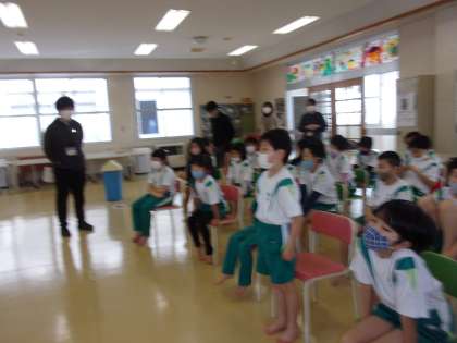 下学年の発育測定後、養護教諭が保健指導を行いました。