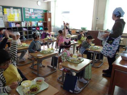 1月12日(水) もぐもぐタイム その2 公開日 2022/01/12 更新日 2022/01/12 朝日小学校NEWS 食欲旺盛!たくさん食べることはとても大切です。 おかわりの手がたくさん挙がっています。 昼のオンライン放送はもうすっかり定着しています。それぞれの教室で、静かに黙食しながら、耳と心、情報はつながっています。 体育担当から、技セブンについてのお知らせがありました。体育タイムで、チャレンジしていきましょう。