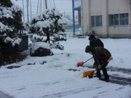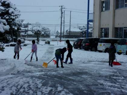 1月13日(木) 雪にも負けず 公開日 2022/01/13 更新日 2022/01/13 朝日小学校NEWS 雪がたくさん積もりました。 出勤するなり、教職員が除雪作業をしています。 登校してきた子供たちは、「除雪してくださってありがとうございます」と、さっそく「サンキュー大作戦」を実行しています。素敵です。 5・6年生も登校後、すぐに前庭に出てきて除雪作業を手伝ってくれました。