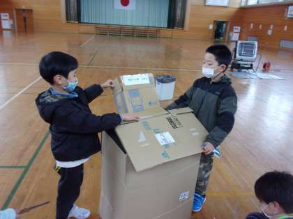 1月17日(月) 2年生 図画工作科 段ボールハウスを作ろう