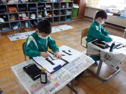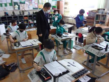 1月18日(火) 3年生 書写 「小」 公開日 2022/01/18 更新日 2022/01/18 3年生 書き初め大会後初めての書写の授業です。 書き初め大会を経て、もっと上手に書けるようになりたいという意欲も高まっています。