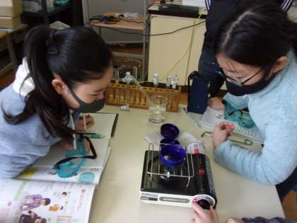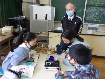 1月20日(木) 6年生 理科 水溶液の性質 公開日 2022/01/20 更新日 2022/01/20 6年生 4本の試験管に入った水溶液の正体を、実験しながら解き明かしています。 今日は熱しててみました。 臭い、結晶、等を観察しています。