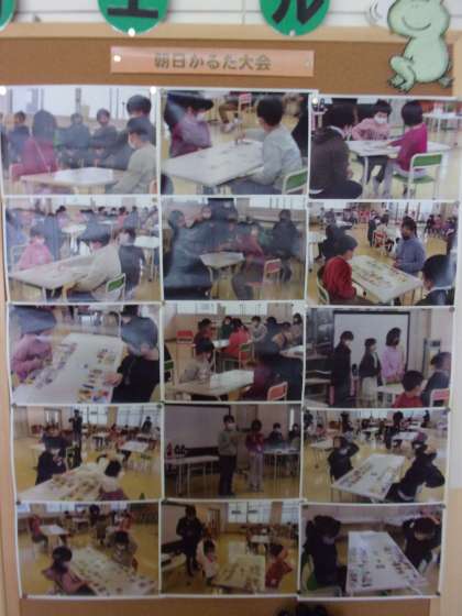 気が付けば、いつの間にか児童玄関前の「振り返りコーナー」は、先日行われた朝日カルタ大会の写真にチェンジしています。