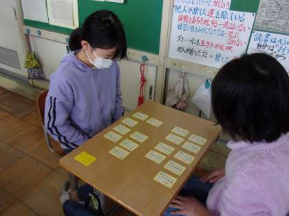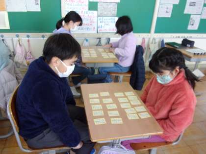 1月21日(金) 5・6年生 国語科 百人一首大会 学級予選 公開日 2022/01/21 更新日 2022/01/21 6年生 5・6年生もリーグ戦をして、学級代表を決めています。 4年生よりも更にレベルの高い対戦です。朝日かるた大会との2冠を狙う子供もいます。 百人一首優勝の座は絶対に譲らないと、気合いの入った対戦が続いています。