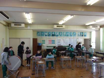 1月26日(水) 2年生 音楽科 合奏にチャレンジ 公開日 2022/01/26 更新日 2022/01/26 2年生 上手に弾けるようになりたいの一心で、子供たちは気合いを入れて練習に励んでいます。 同じ楽器同士で、一緒に合わせたりしながら練習方法も工夫し始めました。意欲は子供の主体性を高めますね。主体性が高まれば、自ずとできるようになっていきます。 AパートからBパートへとステージをアップさせました。
