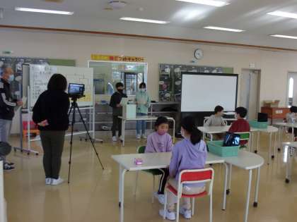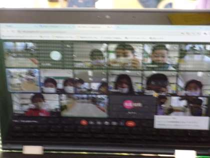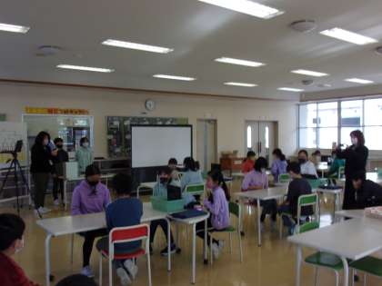 感染症拡大につき、代表者以外は各学級で、一人一台端末で応援をしました。百人一首という昔の文化とchromebookという現代の道具の融合です。