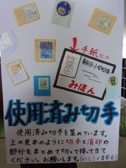 保護者の皆様、ご家庭の使用済み切手、年賀状等の書き損じはがきがありましたら、お子様に持たせていただければ助かります。