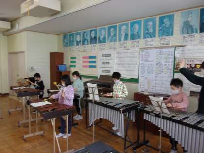 1月28日(金) 2年生 音楽科 合奏にチャレンジ 公開日 2022/01/28 更新日 2022/01/28 2年生 休み時間を返上して音楽室へ行って練習を始める子供たち。 鉄琴と木琴パートが合同で練習し始めています。 個人練習が、同じ楽器での練習へと発展し、次は似ている楽器とも一緒に練習をし始めています。 うまくできると嬉しくて、次へ次へとチャレンジしていきます。