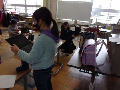 1月28日(金) 6年生 図画工作科 ランドセルを描く 公開日 2022/01/28 更新日 2022/01/28 6年生 6年間大切に使ってきたランドセルを版画にします。 昨年の6年生の作品を参考にしています。chromebookで撮影し、それを見ながら描きます。
