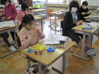 1月28日(金) 5年生 理科 電流が生み出力力 公開日 2022/01/28 更新日 2022/01/28 5年生 「クレーンゲームをしよう」の2時間目です。子供たちはクレーンゲームをするために電磁石を作っています。 苦戦中です。 来週にはみんなで遊べるとよいですね。子供たちは、週末に家で完成させてくることになっています。