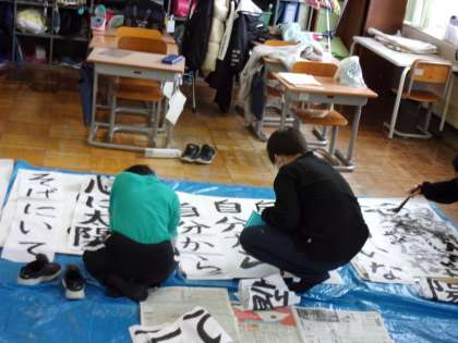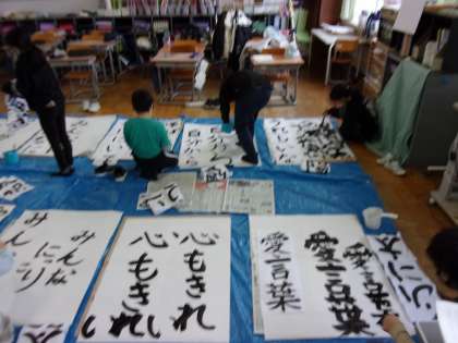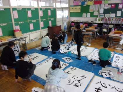 1月31日(月) 4年生 書写 書道パフォーマンス 公開日 2022/01/31 更新日 2022/01/31 4年生 練習をスタートしてからまだ日が浅いですが、かなり上手になっています。 書道パフォーマンス、楽しみですね。