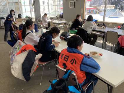 2月1日(火) スキー教室 昼食タイム その1 公開日 2022/02/01 更新日 2022/02/01 学校行事 時間差を設けて、戻ってきた班から昼食をとりました。 みんなゲレンデを向いて黙食です。スキー場で食べるカレーライスは一段と美味しいですね。