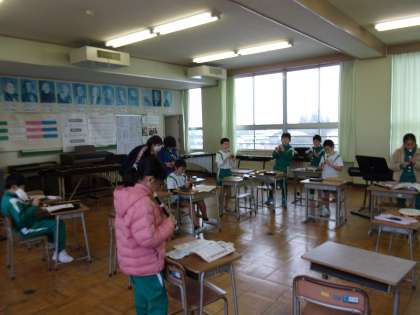 2月2日(水) 3年生 音楽科 まほうの音楽をつくろう 公開日 2022/02/02 更新日 2022/02/02 朝日小学校NEWS 2022年2月2日、「2」がいっぱいの日ですね。 昨日は、天候にも恵まれ、楽しいスキー教室でした。子供たちは、疲れている様子も全く見られず、元気いっぱいに登校してきました。 3年生の音楽科の授業の様子です。 パフの曲をリコーダー演奏しています。