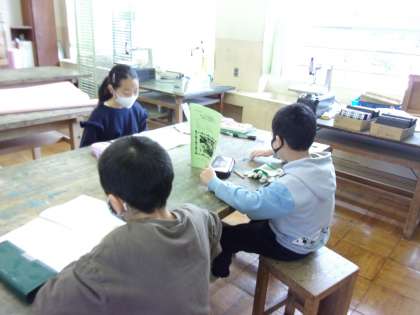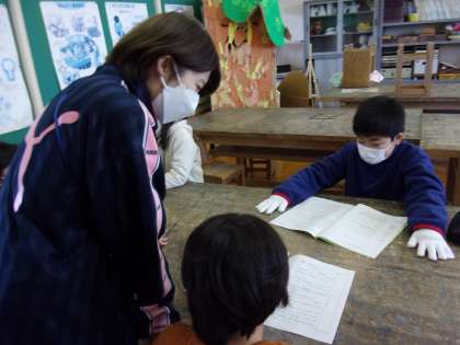 2月3日(木) 3年生 総合的な学習の時間 朝日のスイカについて伝えよう 公開日 2022/02/03 更新日 2022/02/03 3年生 4月からスイカづくりに取り組んできた3年生は、先日は来年度スイカづくりをする1・2年生に紹介し、バトンを渡しました。 学習発表会で、保護者の人に学習の成果として発表するために、これまでの様子を劇化します。 今日は、台本の読み合わせをしています。