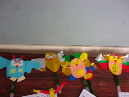 2月4日(金) 2年生 図画工作科 パタパタおもちゃ その2 公開日 2022/02/04 更新日 2022/02/04 2年生 完成しました。 ふくろう率が高いですね。 大きなワニ?のような大作もあります。蜘蛛、女の子、、、どれもユニークな発想で素敵ですね。
