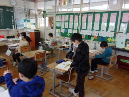 つなぎ言葉を手がかりにしながら、ありの行列について書かれた説明文を読み深めています。
