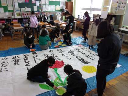 2月7日(月) 4年生 書写 書道パフォーマンス 公開日 2022/02/07 更新日 2022/02/07 4年生 学習発表会に向けて、書道パフォーマンスの練習や準備が進んでいます。 楽しそうに準備している姿が印象的です。