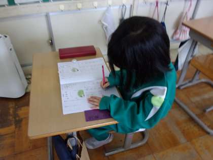 鉛筆の持ち方はどうかな。姿勢はどうかな。油断するとすぐに癖が出ていまいそうですが、頻繁に声をかけその都度直しています。