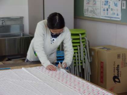 まずは、布を慎重に切っています。