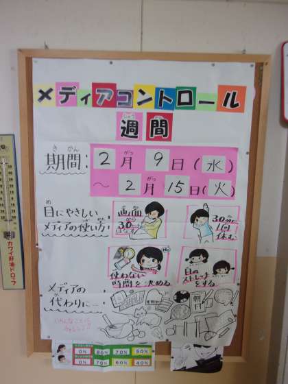 今日9日から15日までをメディアコントロール週間とし、子供たちが自分自身の生活を見直し、「目に優しいメディアの使い方」について振り返ります。