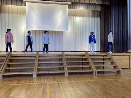体育館で、学習発表会の練習をしました。