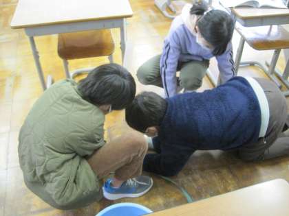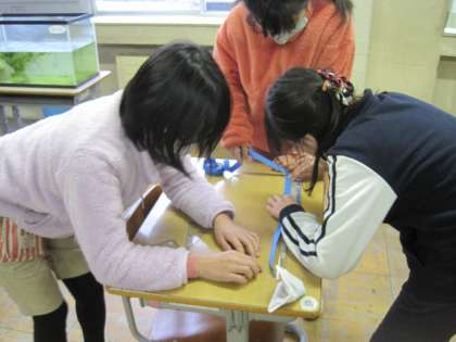 子供たちはどこをどうやって測ったらよいか友達同士で確認しながら活動を進めていました。