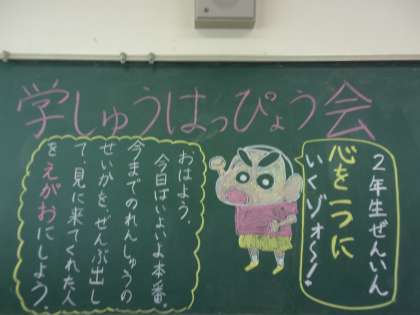 各教室の黒板には、担任の先生からの温かいメッセージ。