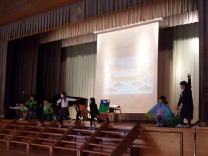 2月19日(土) 学習発表会 1年生 わらしべ長者 その1 公開日 2022/02/19 更新日 2022/02/19 学校行事 トップバッターは、1年生。 国語科の授業で学習した「わらしべ長者」を少しアレンジを加えて朝日小バージョンにして演じます。 相手を意識して、正面を向いて堂々と演技しています。1年生とは思えない演技力です。