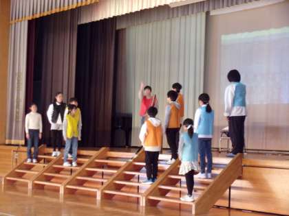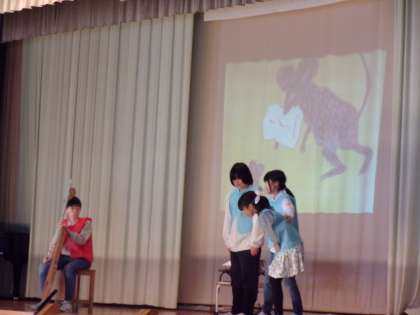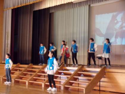 2月19日(土) 学習発表会 5・6年生 劇〜セロ弾きのゴーシュ〜 公開日 2022/02/19 更新日 2022/02/19 学校行事 国語科の授業で学んだ「宮沢賢治の世界」を劇で表現しました。 昨年は、「注文の多い料理店」でしたが、今年は「セロ弾きのゴーシュ」です。 ダンスあり、演技ありで見応えのある劇でした。 最後のカーテンコールの演出も素敵でしたね。