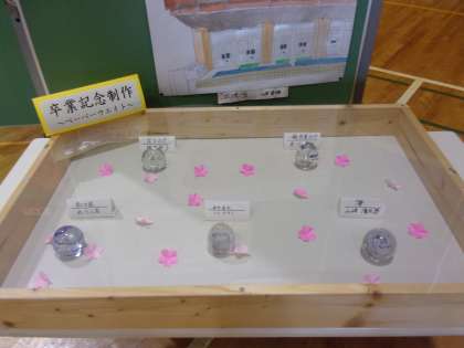 卒業記念制作のガラスのペーパーウエイトも展示してあります。