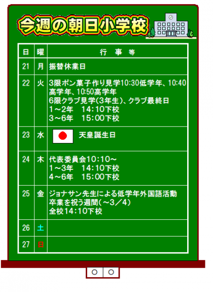 学習発表会が終わり、今週末からは卒業を祝う週間が始まります。お世話になった6年生に感謝の気持ちを伝えます。