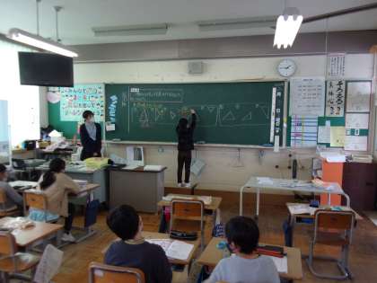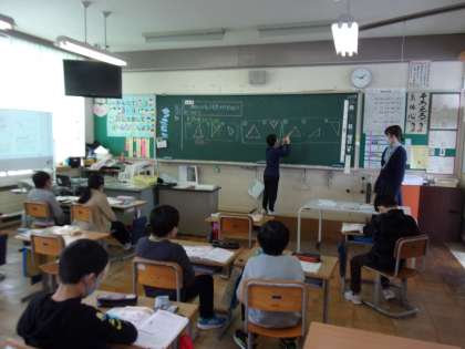 2月22日(火) 3年生 算数科 いろいろな三角形 公開日 2022/02/22 更新日 2022/02/22 3年生 仲間分けされた三角形から、どんな仲間なのかを見つけ出しています。 3辺の長さが等しいもの、2辺の長さが等しいもの、、、等、コンパスを使って見つけ出し、みんなの前で発表しています。
