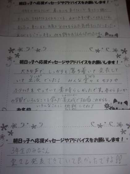 昨日も続々と保護者の方々から学習発表会を終えての温かいメッセージが届きました。