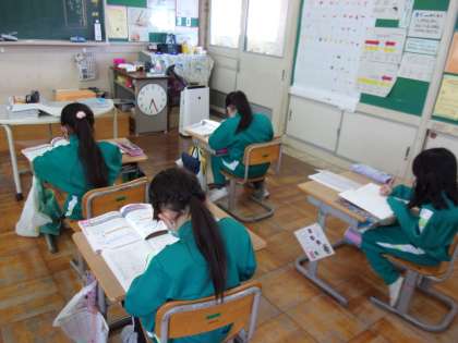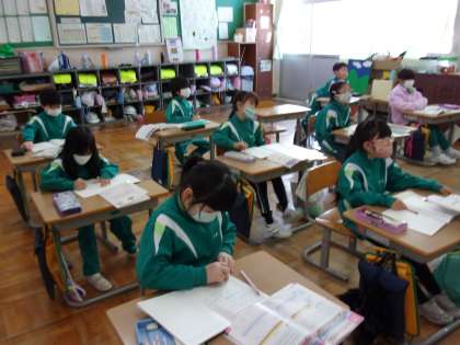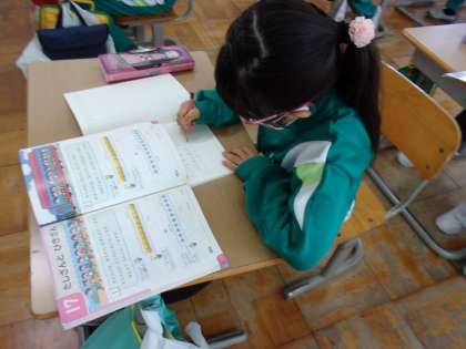 2月24日(木) 1年生 算数科 一列に並べると・・・ 公開日 2022/02/24 更新日 2022/02/24 1年生 「12人いて、前から5番目です。うしろに何人いますか」という問題を、今日はブロックではなく、○をかいて考えています。 一列に並べて考えると分かりやすいですね。