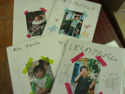 小さい頃の写真を貼り付け、家族の方にインタビューしたことを書き添えて、「ぼく・わたしアルバム」を作りました。