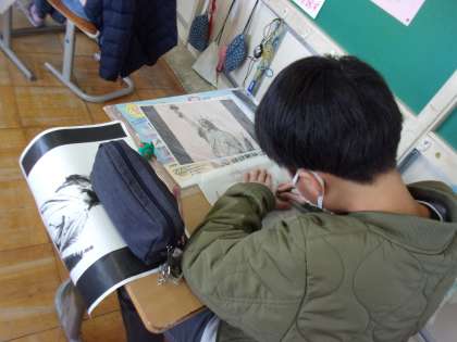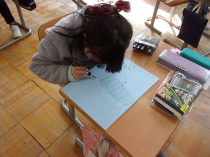 2月28日(月) 5年生 図画工作科 版画で世界遺産 公開日 2022/02/28 更新日 2022/02/28 5年生 世界遺産を版画で制作中です。 清水寺、ピサの斜塔、自由の女神、、、と日本から海外まで様々な世界遺産をchromebookで調べて、画像を見ながら描きました。 もう彫り始めている子供もいます。出来上がりが楽しみですね。